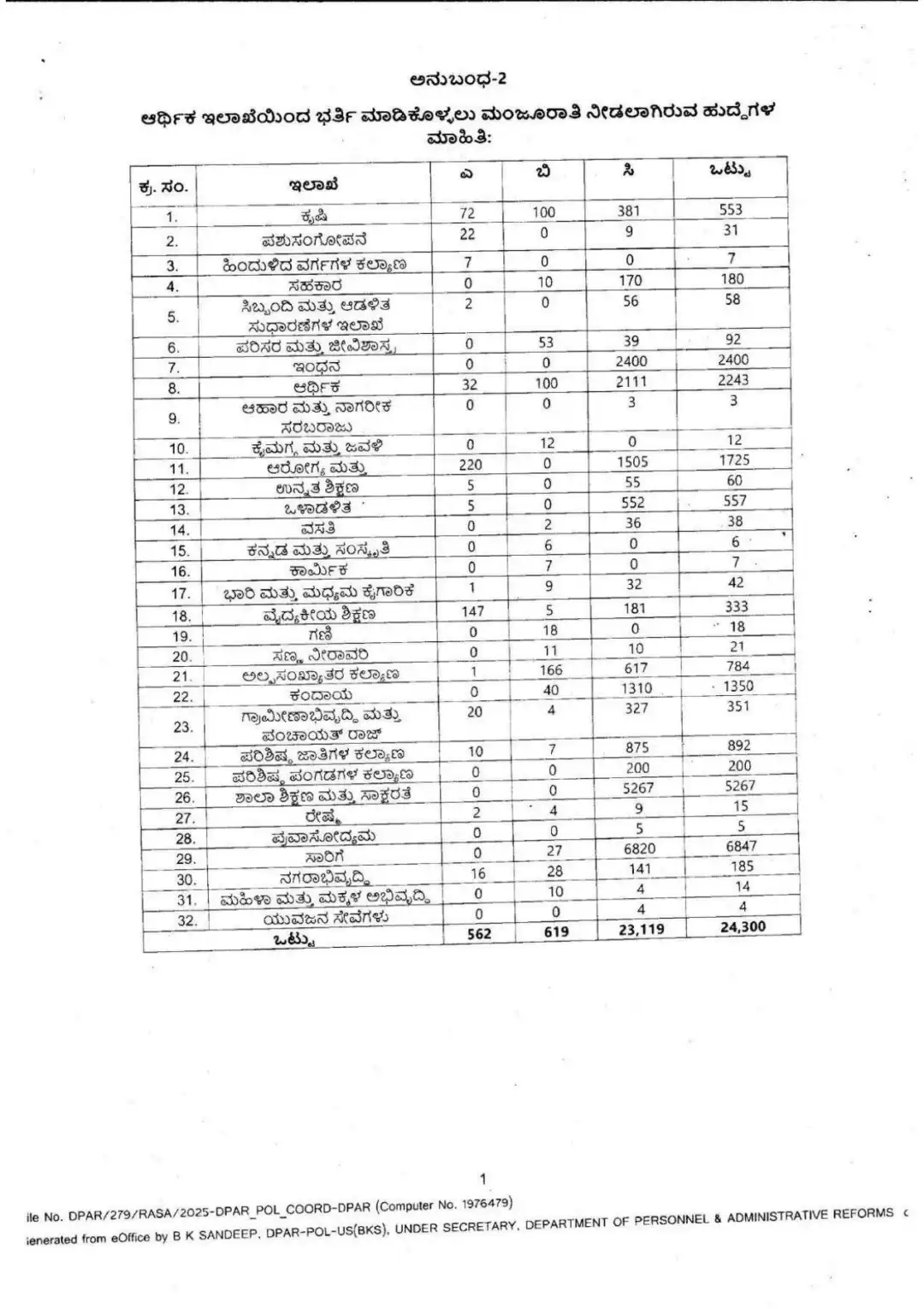 ರಾಜ್ಯ ಸರ್ಕಾರವು ರಾಜ್ಯದಲ್ಲಿ ಸರ್ಕಾರಿ ಮತ್ತು ಅರೇ ಸರ್ಕಾರಿ ಇಲಾಖೆವಾರು ಖಾಲಿ ಇರುವ ಹುದ್ದೆಗಳ ಸಂಖ್ಯೆ ಮತ್ತು ನೇಮಕಾತಿಗೆ ಸರ್ಕಾರದಿಂದ ಅನುಮೋದನೆ ದೊರೆತಿರುವ ಹುದ್ದೆಗಳ ಕುರಿತು ಮಾಹಿತಿ ಹಂಚಿಕೊಂಡಿದೆ.