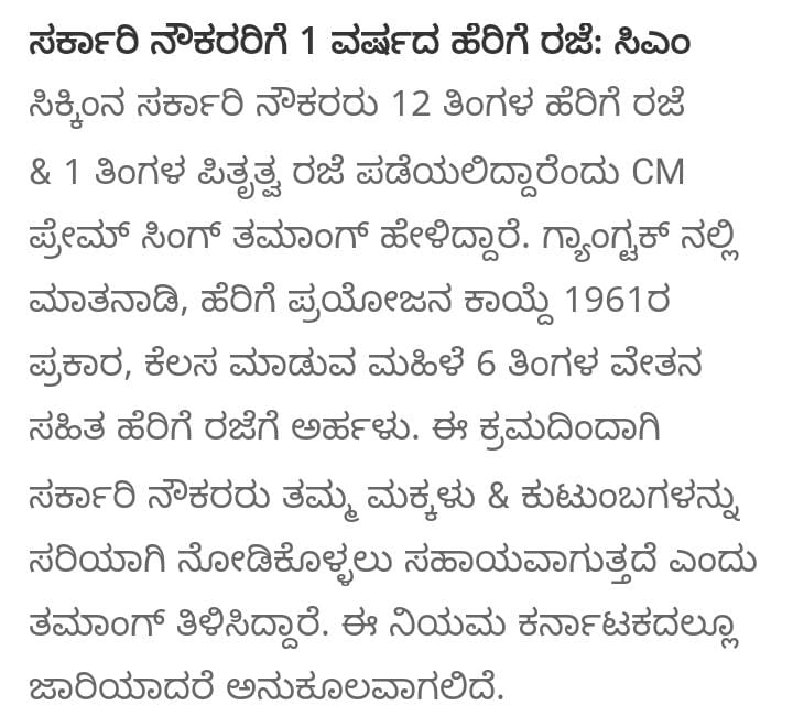 ಸಿಕ್ಕಿಂ ರಾಜ್ಯ ಸರ್ಕಾರಿ ನೌಕರರ ರಜೆ