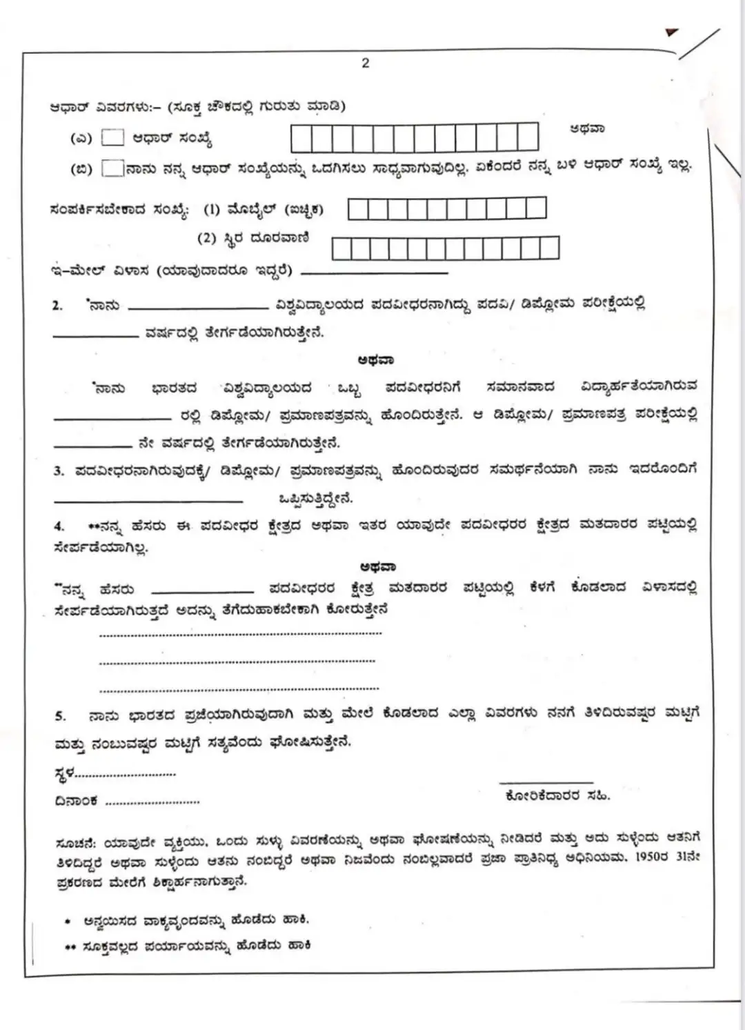 ನಿಗದಿತ ನಮೂನೆಯ ಜೊತೆಗೆ ಗೆಜೆಟೆಡ್ ಅಧಿಕಾರಿಯಂದ ದೃಢೀಕರಿಸಿದ