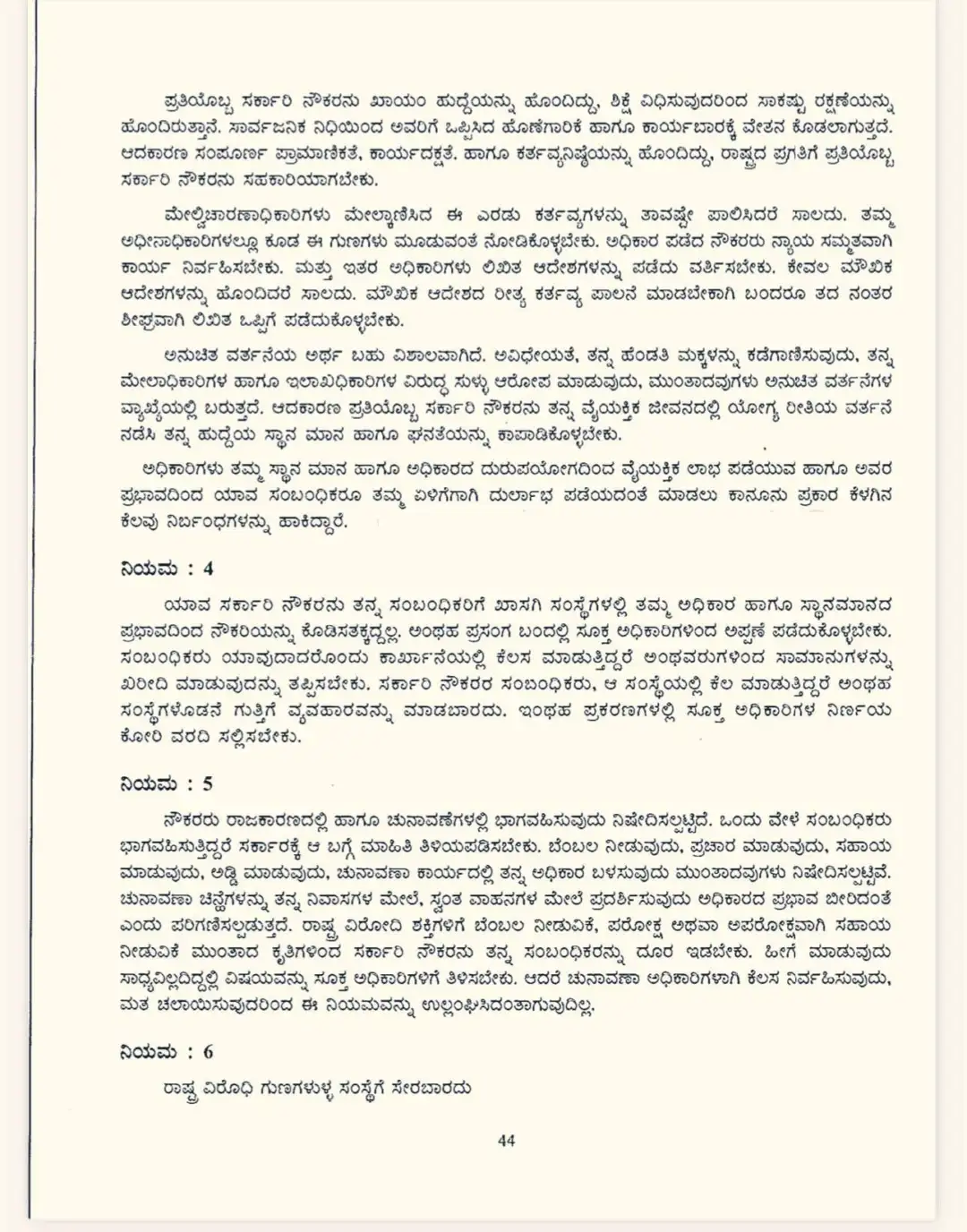 ಪ್ರತಿಯೊಬ್ಬ ಸರ್ಕಾರಿ ನೌಕರನು ಖಾಯಂ ಹುದ್ದೆಯನ್ನು ಹೊಂದಿದ್ದು, ಶಿಕ್ಷೆ ವಿಧಿಸುವುದರಿಂದ ಸಾಕಷ್ಟು ರಕ್ಷಣೆಯನ್ನು ಹೊಂದಿರುತ್ತಾನೆ. ಸಾರ್ವಜನಿಕ ನಿಧಿಯಿಂದ ಅವರಿಗೆ ಒಪ್ಪಿಸಿದ ಹೊಣೆಗಾರಿಕೆ ಹಾಗೂ ಕಾರ್ಯಬಾರಕ್ಕೆ ವೇತನ ಕೊಡಲಾಗುತ್ತದೆ. ಆದಕಾರಣ ಸಂಪೂರ್ಣ ಪ್ರಾಮಾಣಿಕತೆ, ಕಾರ್ಯದಕ್ಷತೆ. ಹಾಗೂ ಕರ್ತವ್ಯನಿಷ್ಠೆಯನ್ನು ಹೊಂದಿದ್ದು, ರಾಷ್ಟ್ರದ ಪ್ರಗತಿಗೆ ಪ್ರತಿಯೊಬ್ಬ ಸರ್ಕಾರಿ ನೌಕರನು ಸಹಕಾರಿಯಾಗಬೇಕು.