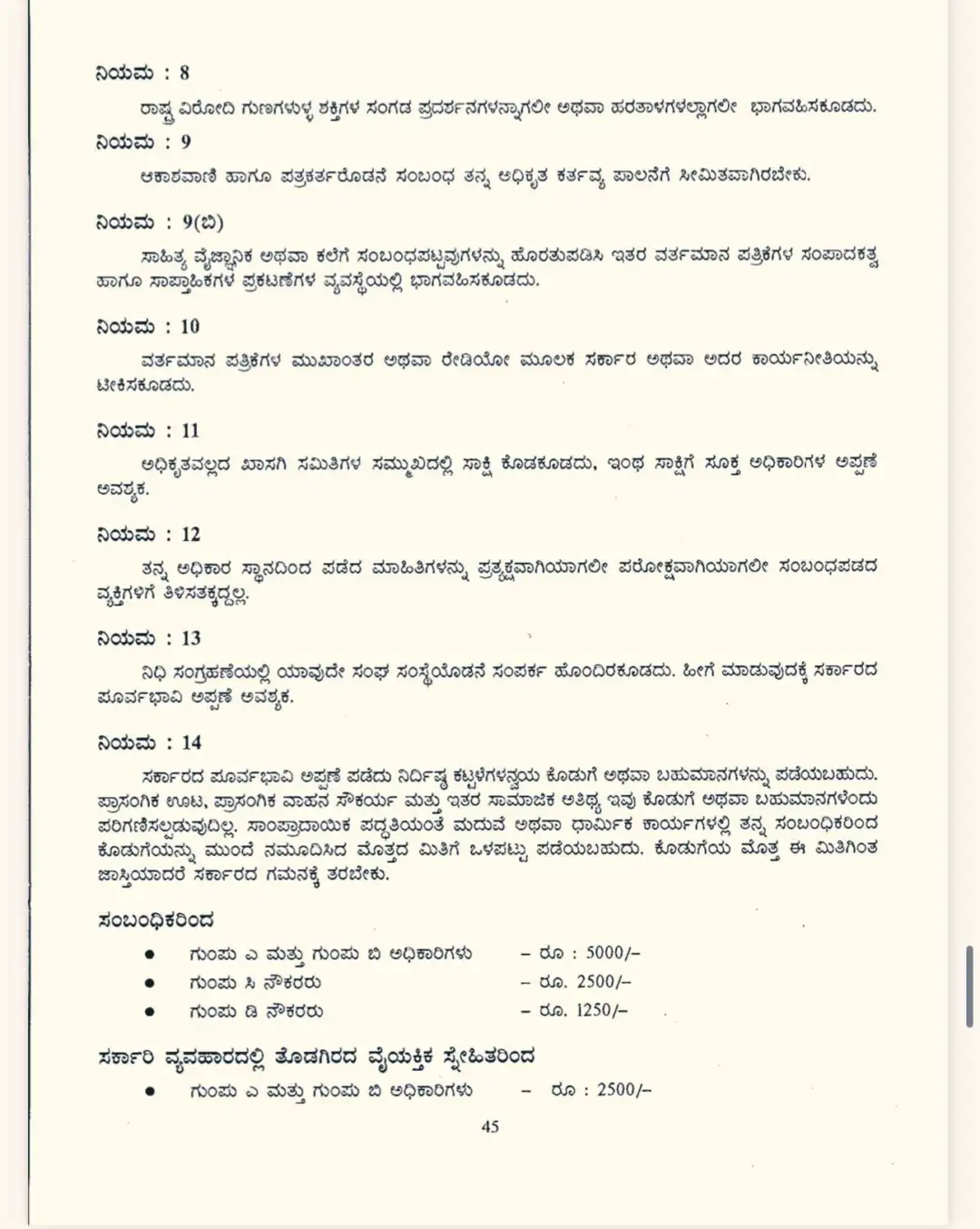 ಕರ್ನಾಟಕ ರಾಜ್ಯದ ಸರ್ಕಾರಿ ಸೇವೆಗೆ ಸದಸ್ಯನಾಗಿರುವ ಅಥವಾ ಕರ್ನಾಟಕ ರಾಜ್ಯದ ವ್ಯವಹಾರಗಳಿಗೆ ಸಂಬಂಧಪಟ್ಟ ಹುದ್ದೆಯಲ್ಲಿರುವ ವ್ಯಕ್ತಿ. ಈ ನೌಕರರ ಸೇವೆಗಳನ್ನು ಯಾವುದೇ ಕಂಪನಿ, ನಿಗಮ, ಸಂಸ್ಥೆ, ಅಥವಾ ಸ್ಥಳೀಯ ಸಂಸ್ಥೆಗಳ ಕಾರ್ಯನಿಮಿತ್ತ ವಹಿಸಿಕೊಡಲಾಗಿದ್ದರೆ, ಹಾಗೂ ಇವರ ವೇತನವನ್ನು ಸ್ಥಳೀಯ ನಿಧಿಯಿಂದ ಪಡೆಯಲಾಗುತ್ತಿದ್ದು ಸಂಚಿತ ನಿಧಿಯಿಂದ ಪಡೆಯಲಾಗುತ್ತಿಲ್ಲದಿದ್ದರೂ ಸಹ ಅವರನ್ನು ಈ ನಿಯಮಗಳ ಉದ್ದೇಶಕ್ಕಾಗಿ ಸರ್ಕಾರಿ ನೌಕರರೆಂದು ತಿಳಿಯುವುದು.