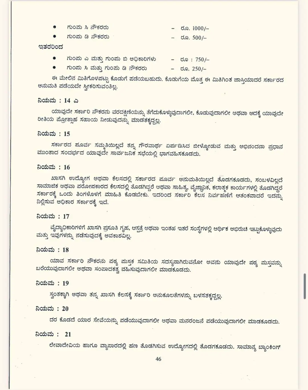 ಆ) ರಾಜ್ಯಪಾಲರು, ಸಾಮಾನ್ಯ ಅಥವಾ ವಿಶೇಷ ಅಧಿಸೂಚನೆ ಹೊರಡಿಸಿ ಯಾವ ಹುದ್ದೆಯಲಿ ಇರುವಂತಹವರಿಗೆ ಈ ನಿಯಮ ಅನ್ವಯಿಸುವುದಿಲ್ಲ ಎಂದು ತಿಳಿಸಿರುವ ನೌಕರರು.